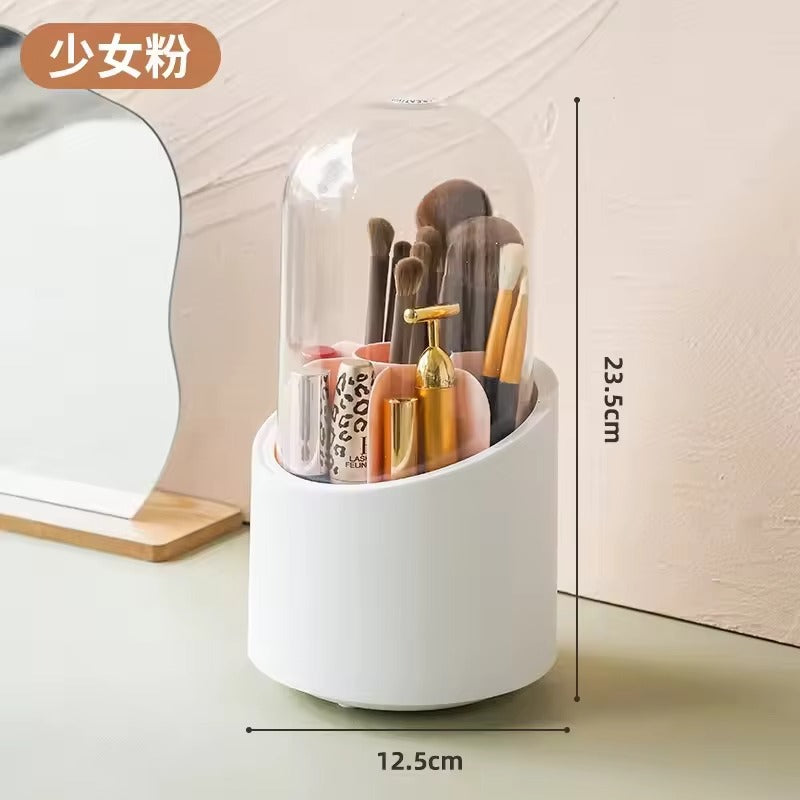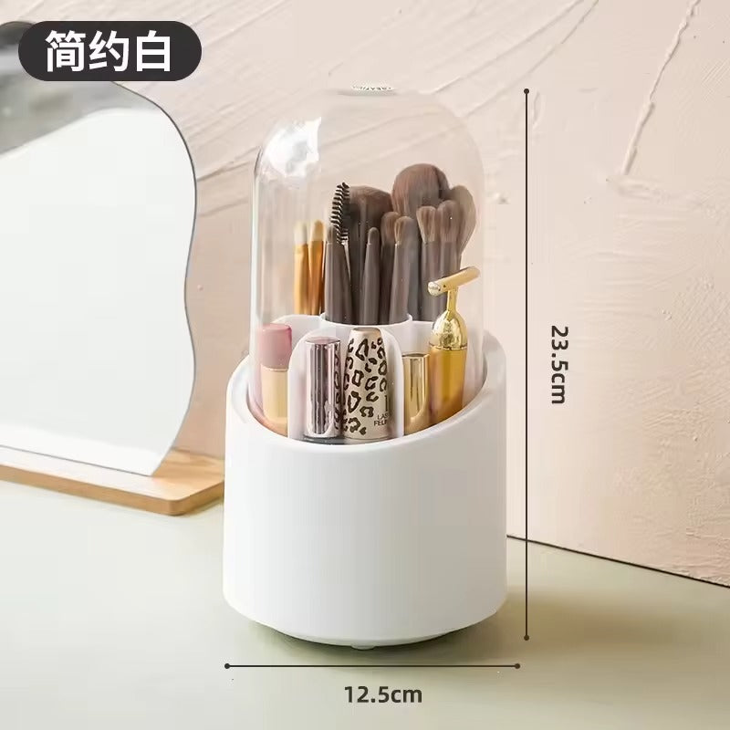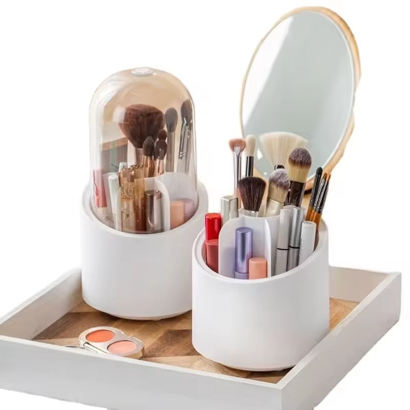 Keep your beauty essentials organized and dust-free with this Covered Rotating Makeup Brush Holder—a stylish and functional cosmetic organizer perfect for every vanity setup. With a 360° rotating base, this makeup organizer allows easy access to brushes, lipsticks, eyeliners, and more. Its clear dustproof cover keeps your items clean and visible, while the compact design maximizes storage without cluttering your dressing table. Whether you're a beauty enthusiast or a professional MUA, this brush holder is your ultimate space-saving solution.