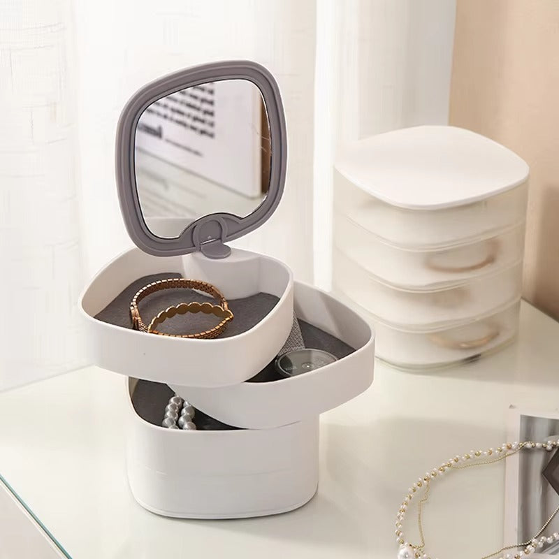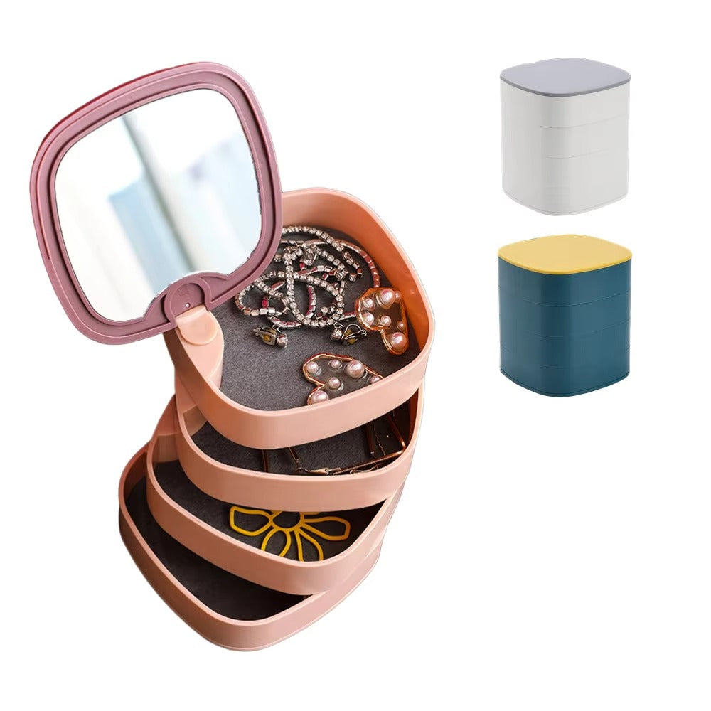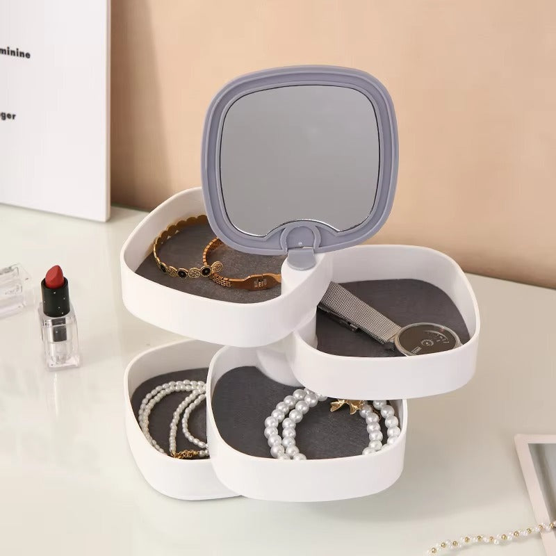 4-Layer Rotating Jewelry Organizer Box with Mirror