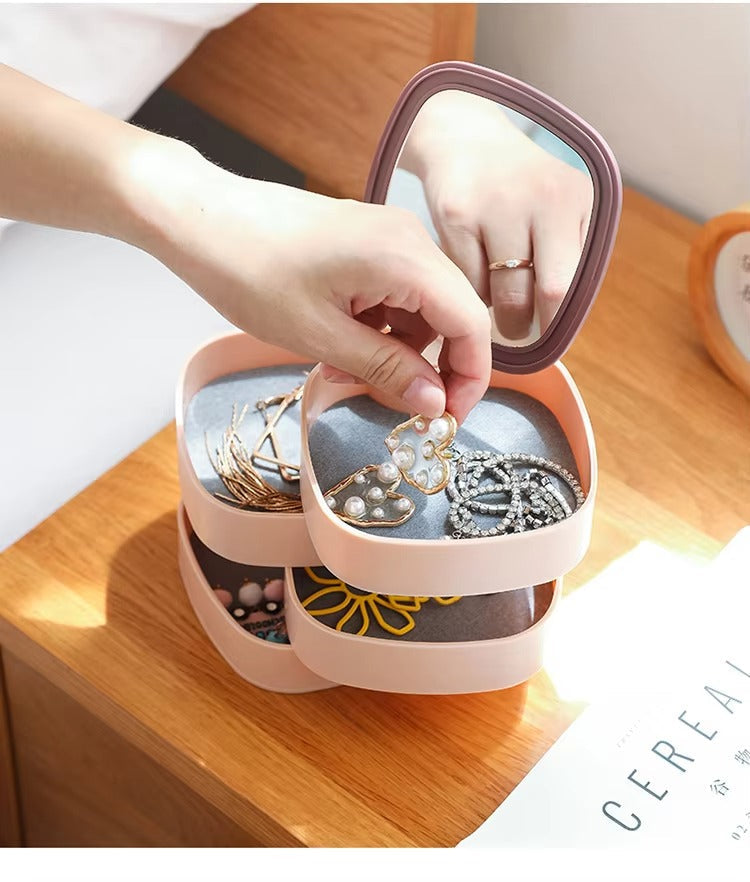 Meet the perfect jewelry organizer for every fashion lover. This elegant 4-Layer Rotating Jewelry Box features a 360° spin function and a mirror lid, making it your go-to solution for keeping your favorite pieces organized, dust-free, and always within reach.