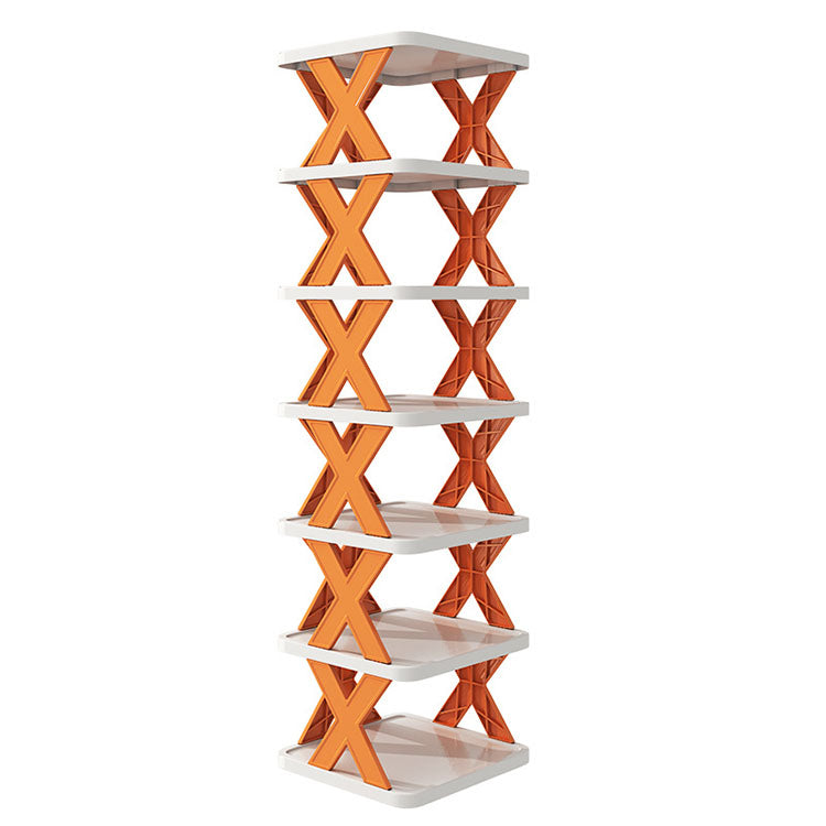 Designed with an X-frame structure for enhanced stability, this high-quality plastic rack is stackable, foldable, and easy to assemble – no tools needed! The ventilated layer shelves prevent odor buildup, keeping your footwear fresh and dry.