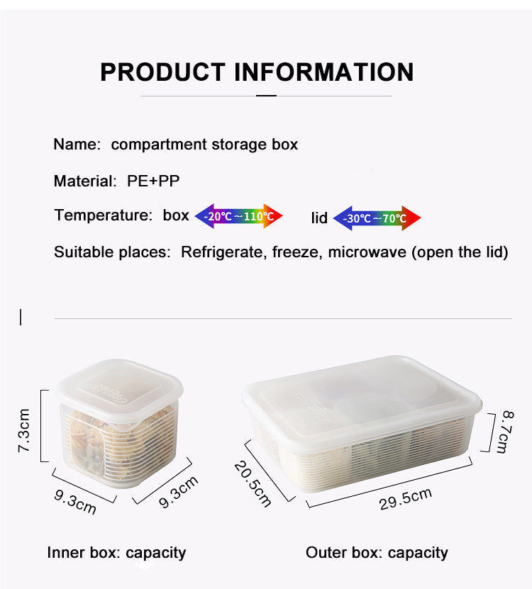 Crafted from high-quality BPA-free plastic, it’s safe for food and durable for everyday use. The transparent lid helps preserve freshness and makes it easy to identify contents instantly. Whether you're organizing your fridge, kitchen cabinet, or pantry — this multi-compartment food storage box brings smart organization to your home.