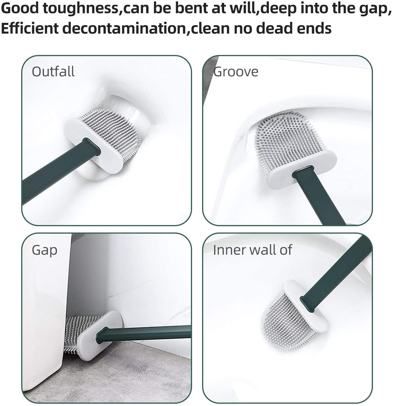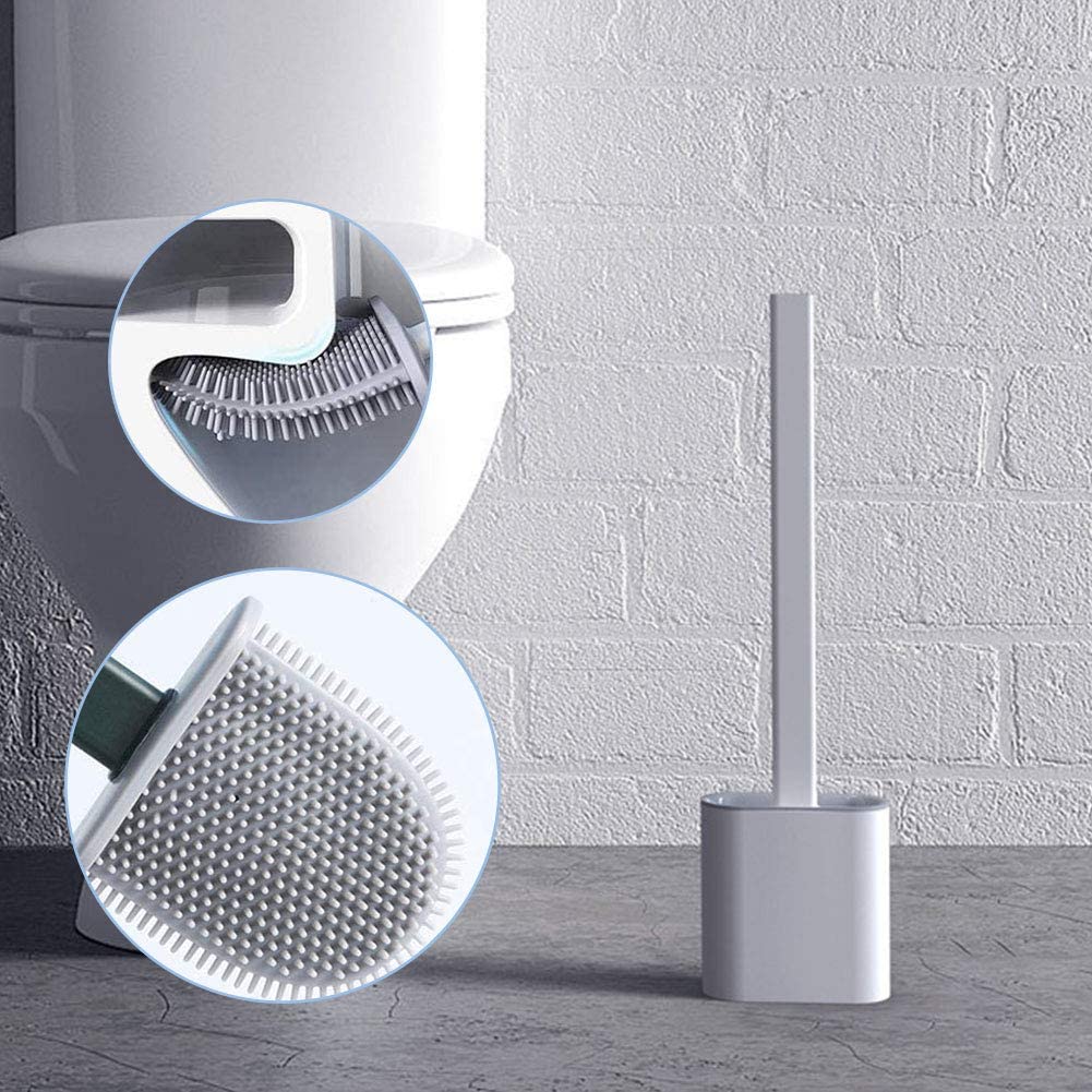 Silicone Toilet Cleaning Brush with Soft Rubber Bristles & Holder
